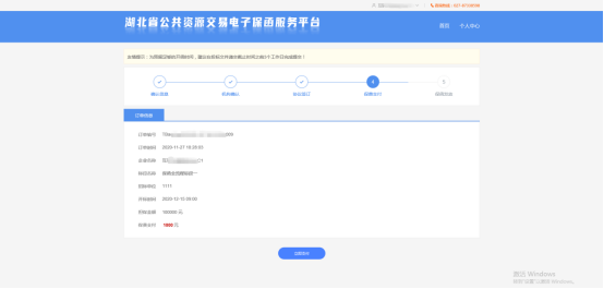 8、确认保费信息无误,点击立即支付查看企业对公转账账号或前往网银支付扣款;支付完成之后,等待出函。