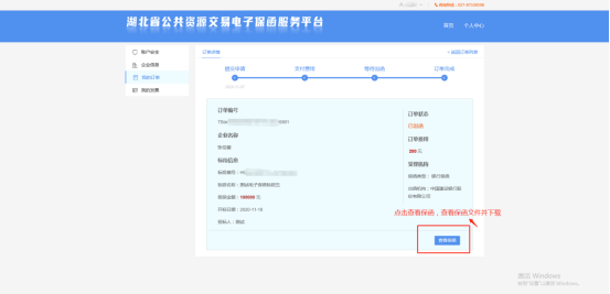 2、点击下载,跳转电子保函服务平台查看下载保函文件