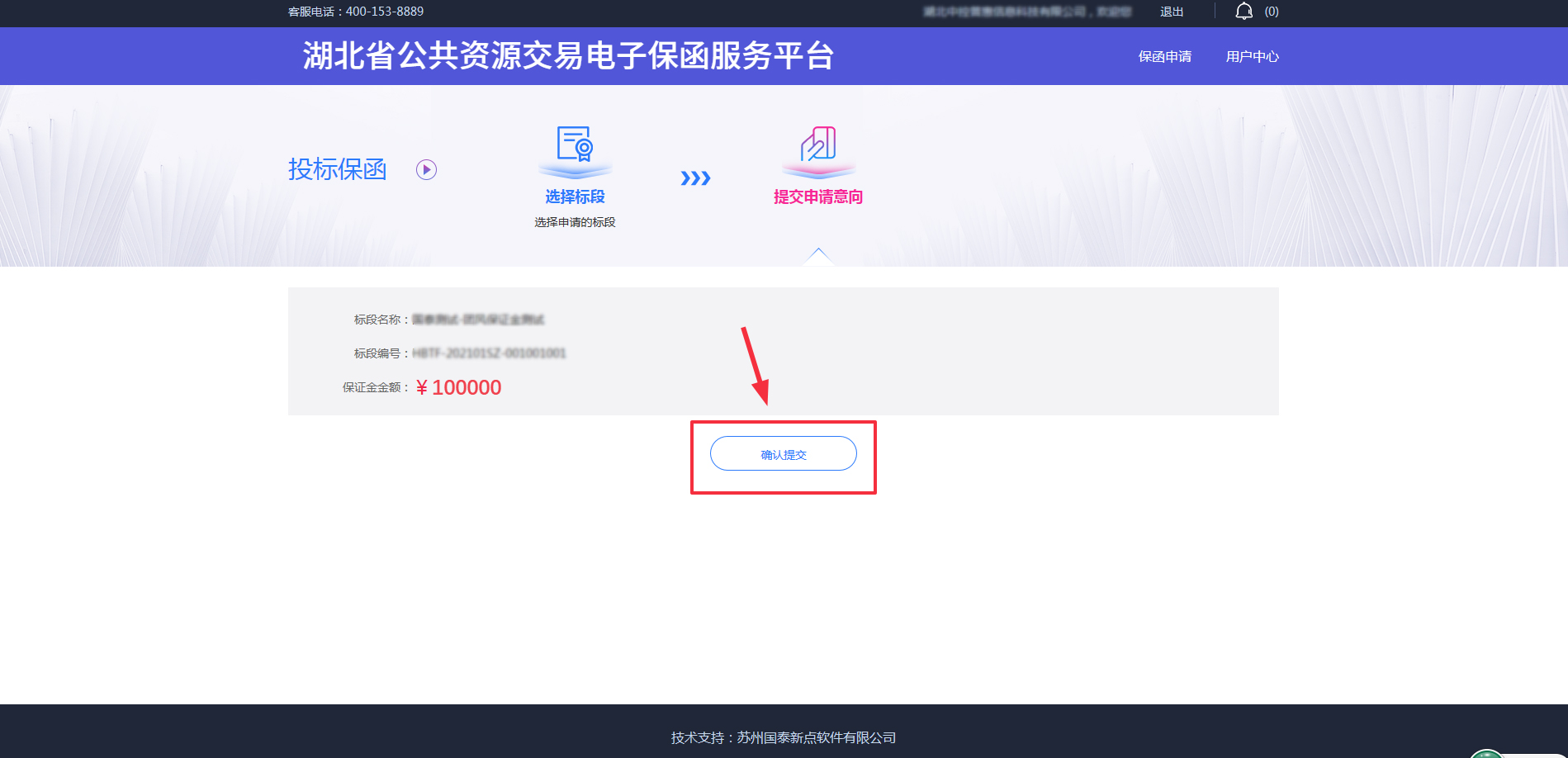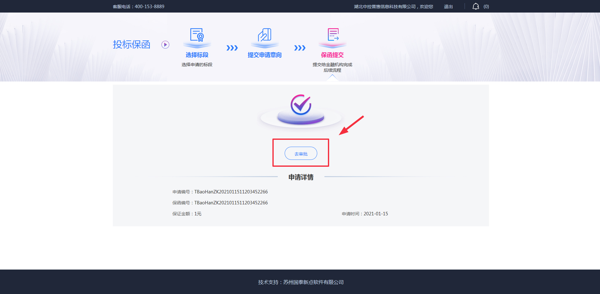 3、点击【确定提交】提交电子保函申请意向。